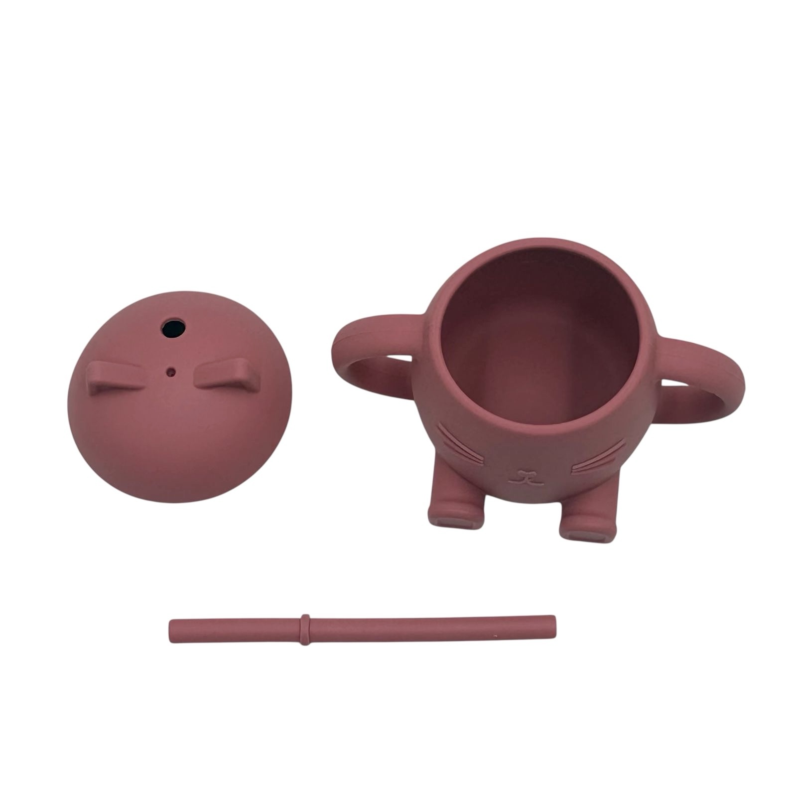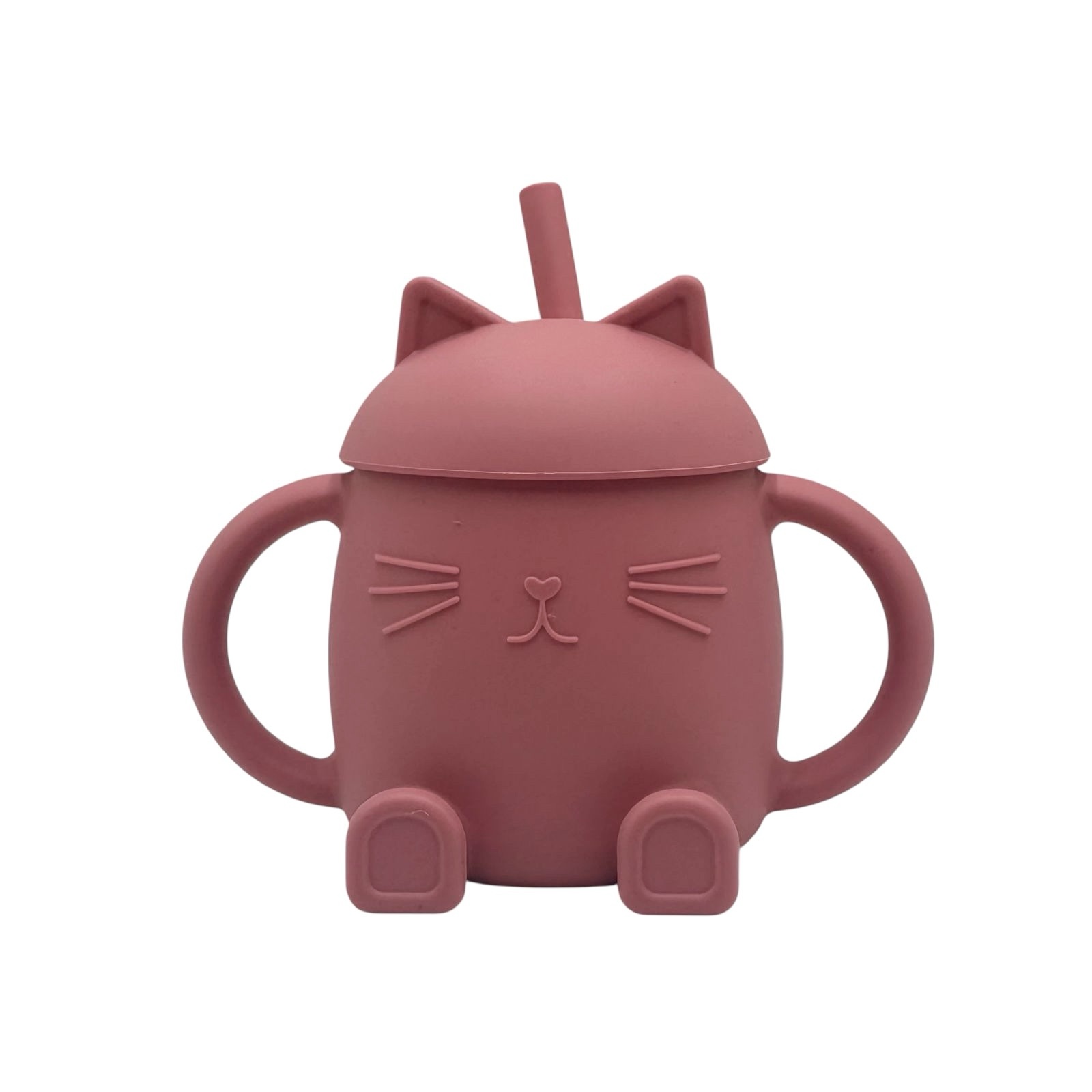 Chester The Cat II- Dusty Pink – Εκπαιδευτικό ποτηράκι σιλικόνης με στεγανό καπάκι & καλαμάκι